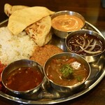 ご飯は、ギー(インド料理で使われるバターオイル)と一緒に炊き上げることによってほんのりと感じる甘味が加わり、それがカレーのおいしさを引き立てていますし、副菜も工夫があって実に良い感じ。全体的に完成度が高いです。