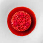 メインは肉と魚からどちらかをセレクト。高級魚のハタは脂がのっており、炭火の香りをまとい上品に焼き上げられている。レモンのさっぱりとしたソースと、ボッタルガ(カラスミ)のコクが一体となり、ワインとの相性も抜群の一皿。
