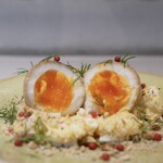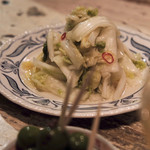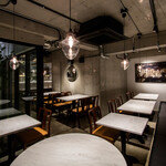 恵比寿にある焼肉の名店「うしごろ」系列の中華は、白を基調とした店内がスタイリッシュだ。大理石のL字カウンター、エイジングさせたコンクリート壁面、アンティーク家具と所々にあしらった東洋と西洋のミックス感。中国料理をベースに世界各国の料理をミックスしているそうで、見た目もピンチョス風、パクチーやセロリなど香り野菜を多用したサラダのようなルックス、ソムリエおすすめワインが飲めるなど近隣のお洒落なビジネスウーマンたちが昼にこぞってやって来る。