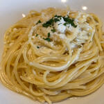 また、本物志向の手打ちパスタも人気メニュー! 「打ち立てのパスタって、なかなか食べる機会がないと思うんです。よく生パスタは“モチモチ”といいますが、本当に打ち立てのパスタは歯切れの良さが魅力。作り手としては大変なんですけれど、お客様にもぜひこのおいしさを知ってほしい」と佐藤シェフは語ります。パスタのメニューも旬によって変わり、この日は細麺のタリオリーニを使った「しらすと赤玉葱のペペロンチーノ」1,150円(税抜)。